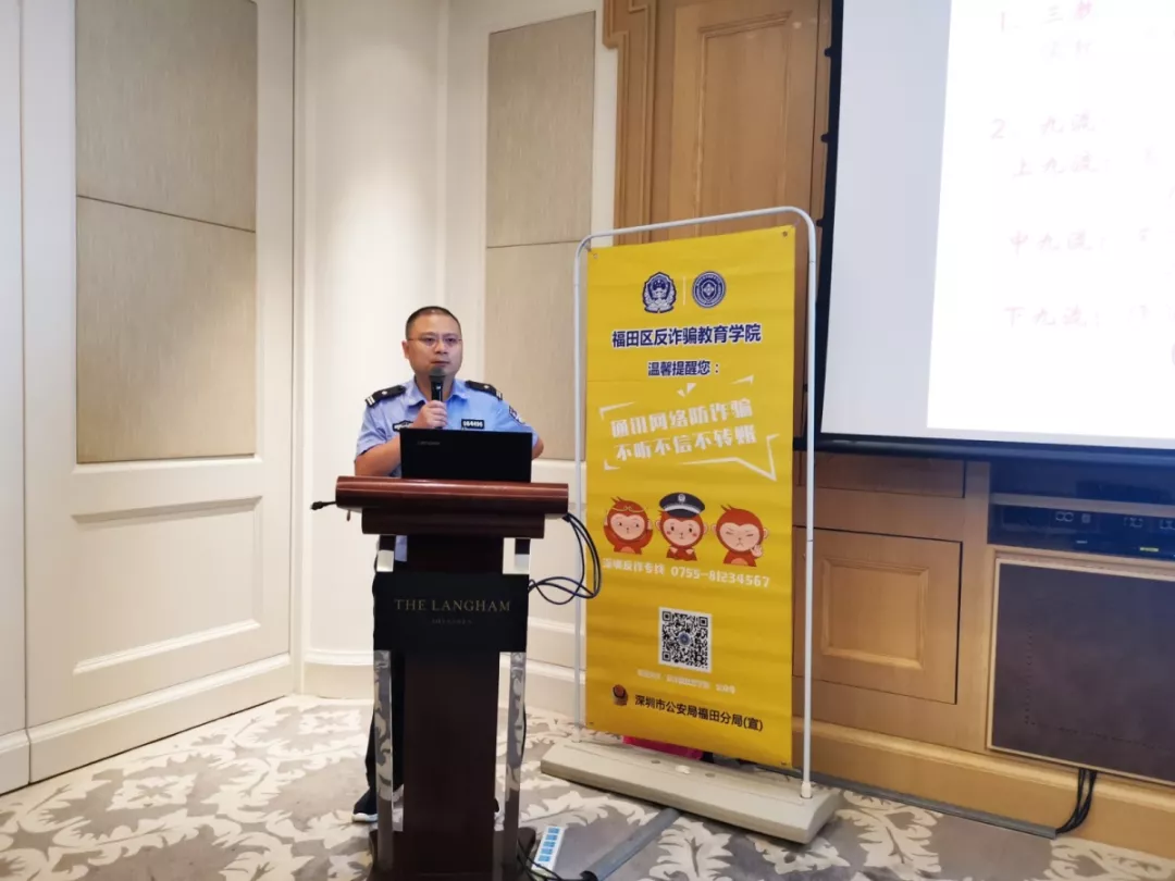 8月12日,福田區(qū)反詐騙教育學(xué)院系列第48場(chǎng)公開(kāi)課走進(jìn)香蜜湖派出所轄區(qū)東海朗庭酒店,第37場(chǎng)宣傳活動(dòng)走進(jìn)福田派出所轄區(qū)翰森大廈。(兩次活動(dòng)覆蓋附近商戶及企業(yè)員工近300人。累計(jì)目前為止,共走進(jìn)6234家企業(yè)及商戶。)