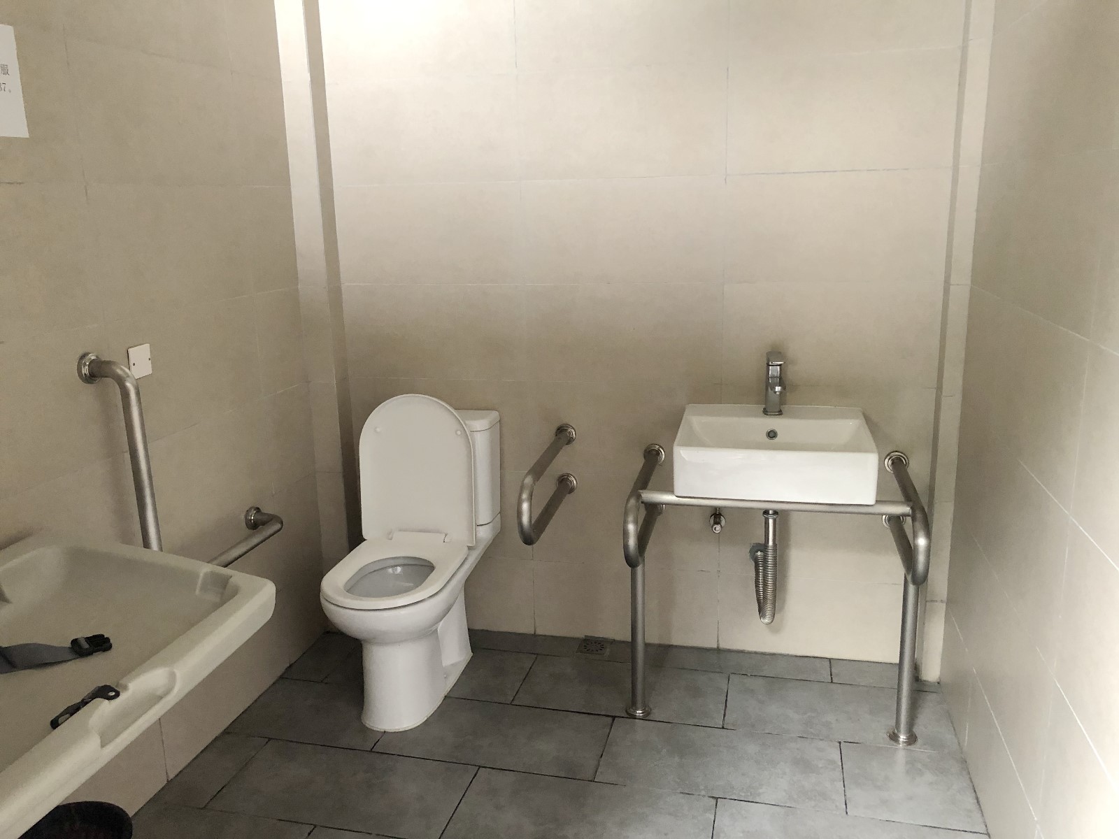 ▲記者來到深圳人頗為喜愛的“網(wǎng)紅公園”——香蜜公園采訪時,正值夕陽西下,天氣由炎熱略轉(zhuǎn)涼爽,很多家長帶著孩子在兒童游樂場里嬉戲。游樂場附近有一個公共廁所,記者沒有找到親子衛(wèi)生間,但也在公廁門口發(fā)現(xiàn)了母嬰室、殘疾人衛(wèi)生間“二合一”的衛(wèi)生間,內(nèi)有一個帶扶手的坐便器和母嬰設(shè)施。