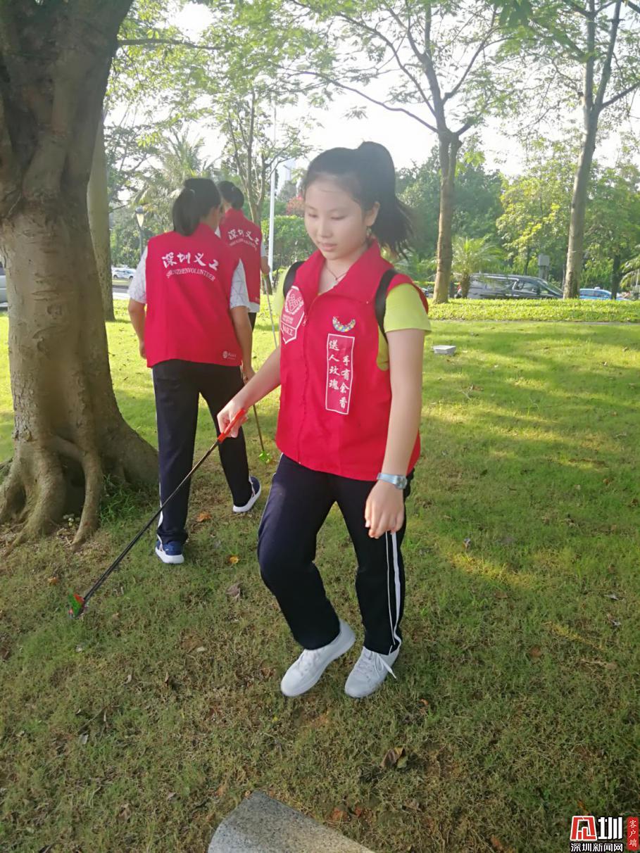 又走了兩圈,待我們的垃圾袋已經(jīng)“物”滿為患時,我們放下工具,結(jié)束本次活動??粗晃覀兓厥盏囊淮?,再看看經(jīng)我們“美容”過后的地方,我們擦擦汗,會心地笑了。再看看那充滿笑臉的家長和義工叔叔阿姨時,不由得一陣感慨:這里的義工,真是深圳最美麗的一群人。他們沒有報酬,卻堅持初心,一味地付出,不計回報。他們的精神就如義工服上“贈人玫瑰,手有余香”的幾個字一樣。雖不是流芳千古,卻藏在深圳的一花一草一樹一木里。他們的步子,無數(shù)次踏在那被烈日曬得滾燙的石子路上;他們的手,也一次次撿起垃圾。他們有著自己的工作事業(yè),卻在百忙之中抽出空隙,為美麗的深圳貢獻出自己的一份力量,他們用自己的愛與善良,譜寫了一篇又一篇的“美麗詩篇”,他們用自己的行動,感染了身邊的人群,所以深圳的義工隊伍也越來越大。