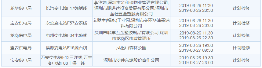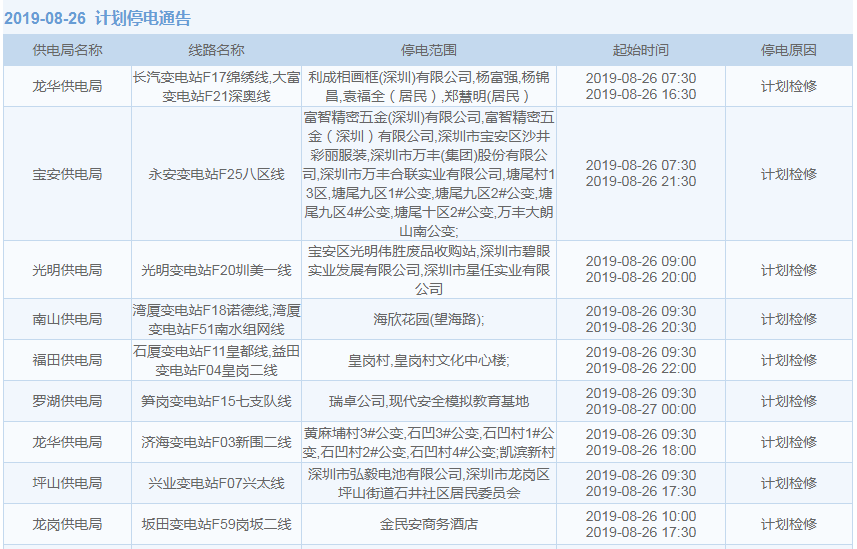 8月26日計劃停電通知:
