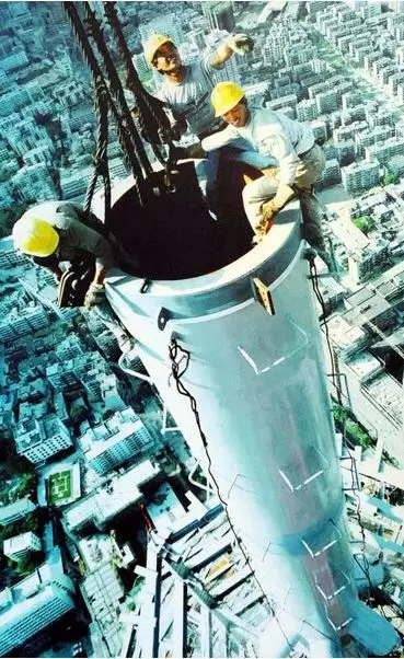 1984年9月4日,國貿(mào)大廈封頂。江式高攝