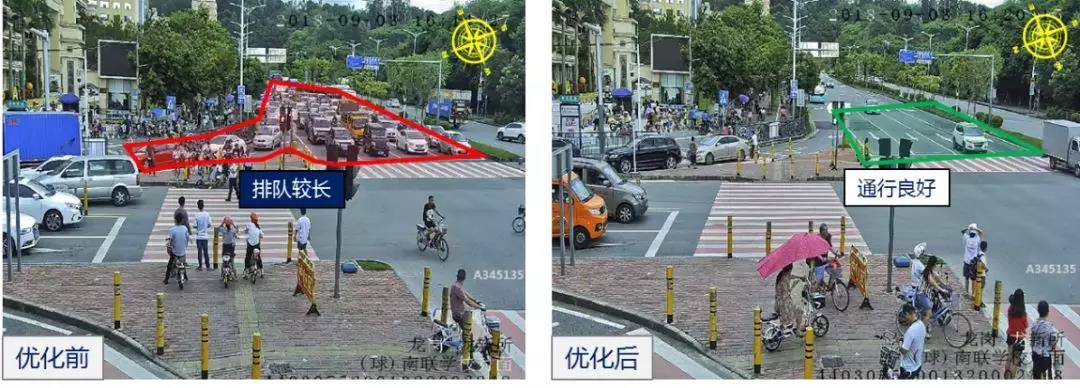 臨近放學時段,龍崗區(qū)愛南/植物園路口東面車輛增多,存在擁堵情況,深圳交警立即步伐保持該路口,增加東面放行時間,15分鐘后路口恢復正常。