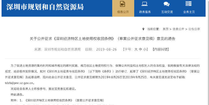 深圳市土地使用權(quán)收回新條例 補償標(biāo) ...