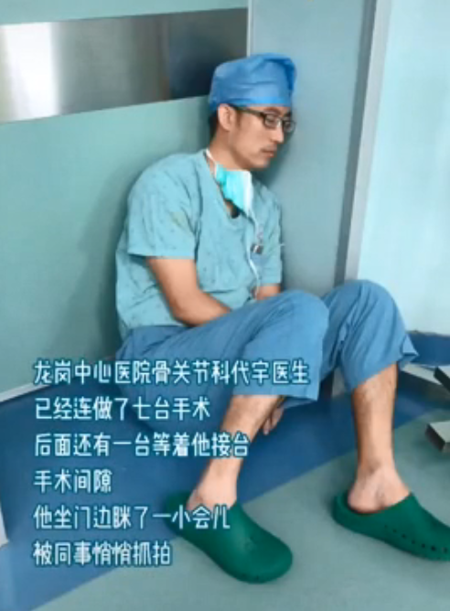 他連做7臺(tái)手術(shù),在第8臺(tái)手術(shù)開(kāi)始前的間隙,靠著墻睡著了