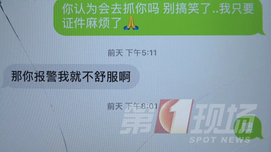 陳先生事主:我就說錢你拿去,把證件還給我行不行,他居然說:“你報(bào)警我就不舒服了”,難道我報(bào)警還有錯(cuò)嗎?真的太猖狂了。