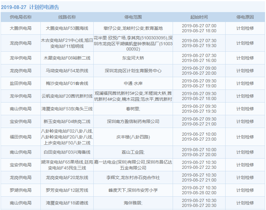 8月27日,今年第12號(hào)臺(tái)風(fēng)“楊柳”正式生成,雖然其中心還位于距離深圳1570公里的菲律賓以東洋面上,但未來幾天,深圳的悶熱天氣是安排上了。更慘的是,據(jù)中國(guó)南方電網(wǎng)消息,8月27日起至9月12日,深圳這部分地區(qū)要停電了!快來看看有沒有你家的吧。