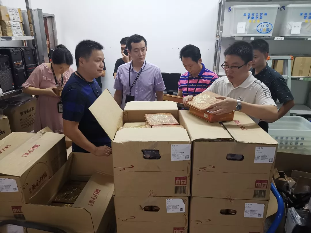2019年9月3日,深圳市市場監(jiān)管局羅湖監(jiān)管局聯(lián)合公安機(jī)關(guān)連夜查處一跨區(qū)域售賣假冒月餅案,查扣涉嫌假冒品牌月餅近千盒,公安機(jī)關(guān)帶走一名嫌疑人調(diào)查,成功打響中秋節(jié)前“月餅保衛(wèi)戰(zhàn)”。