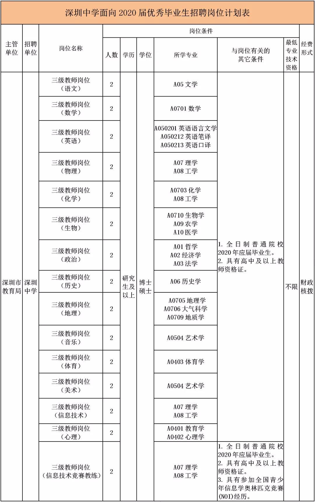 近日,深圳中學(xué)再發(fā)“英雄帖”,開啟2020屆高校畢業(yè)生招聘工作。此次共招聘30人,包括語文、數(shù)學(xué)、英語、物理、化學(xué)、生物、政治、歷史、地理、音樂、體育、美術(shù)、信息技術(shù)、心理學(xué)科教師,以及信息技術(shù)競賽教練。