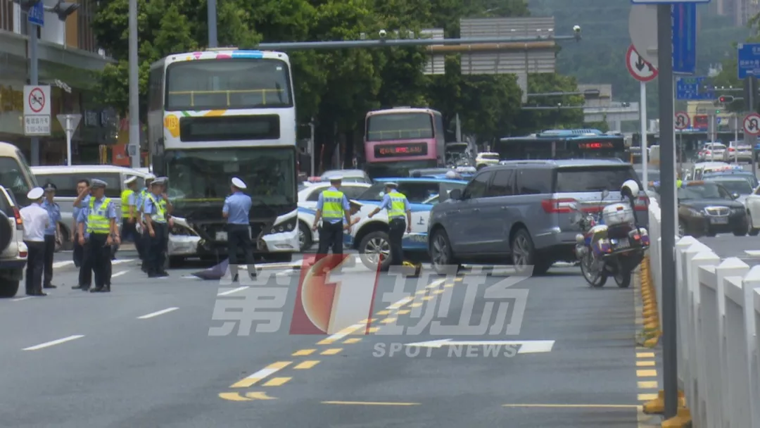與一輛雙層大巴和一輛私家車發(fā)生碰撞