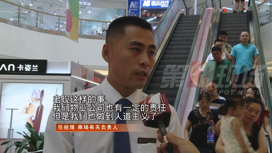 但商場負責人介紹,監(jiān)控顯示:事故發(fā)生大約10秒鐘左右,保安就及時趕到了現(xiàn)場。