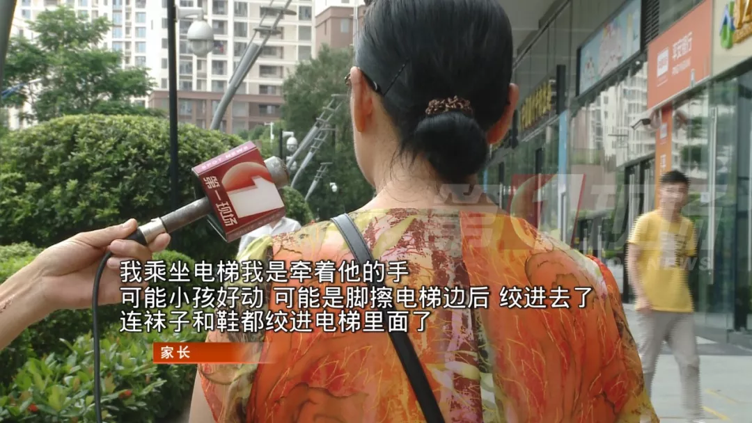 一位過路的市民見狀,按下了電梯緊急停止鍵,李女士這才慢慢幫助兒子脫困。孩子的洞洞鞋,前半截在電梯空隙里被絞斷,只剩下后半截,萬幸的是,小孩沒有受傷。