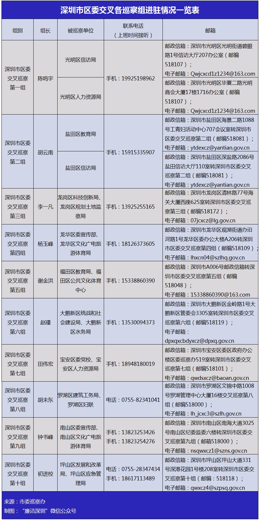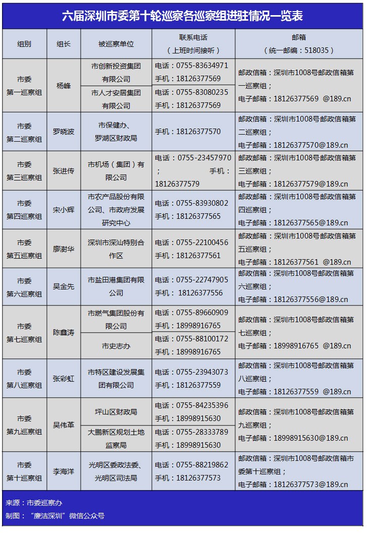 六屆深圳市委第十輪巡察完成進駐 各巡察組聯(lián)系方式公布