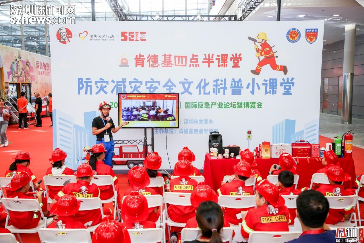 見圳客戶端、深圳新聞網(wǎng)2019年9月23日訊(見圳客戶端、深圳新聞網(wǎng)記者 陳彬)頭戴消防安全帽,手持mini滅火器,身穿靚麗正紅的消防服裝,9月21日,在深圳會(huì)展中心的深圳國(guó)際應(yīng)急博覽會(huì)上,一群可愛的小小消防員們吸引了全場(chǎng)的目光。原來,這是“肯德基四點(diǎn)半防災(zāi)減災(zāi)科普小課堂”正在深圳國(guó)際應(yīng)急博覽會(huì)上舉行。30名小朋友們裝備齊全,神采奕奕地 cosplay了一把“小小消防員”。他們認(rèn)真聽消防教官的科普演講,參觀消防教育科普雙層巴士,近距離感受消防車、應(yīng)急無人機(jī)等專業(yè)的防災(zāi)救援高科技裝備的硬核魅力……獨(dú)特的消防體驗(yàn)讓同學(xué)們十分興奮。