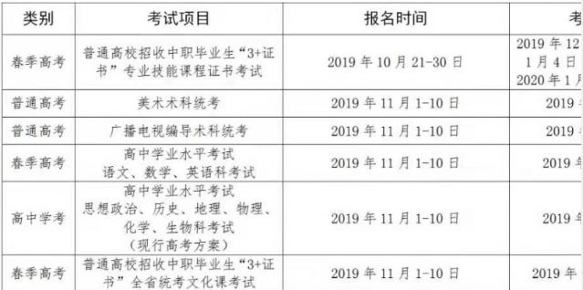 1.第一次報名時間為2019年12月1—6日;考試時間為2020年1月6日,考試科目為歷史、地理、化學(xué)和生物學(xué)等4門的合格性考試。