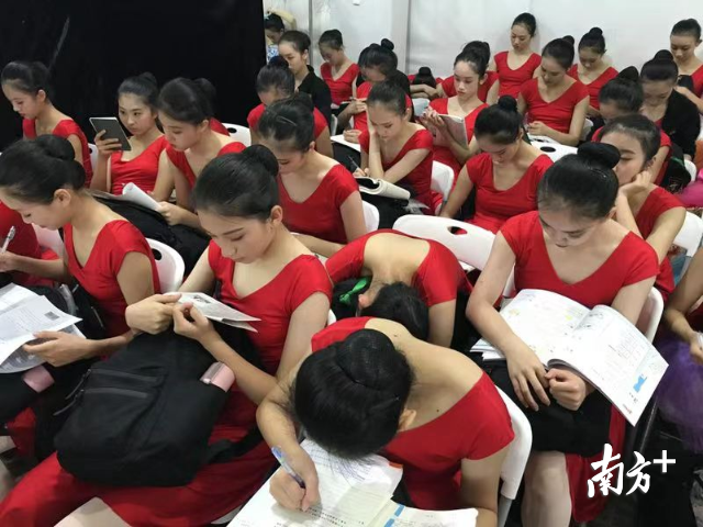 在晚會(huì)的另一個(gè)彩排候場(chǎng)點(diǎn),36名來(lái)自深圳高級(jí)中學(xué)舞蹈團(tuán)的參演學(xué)生在彩排和演出間隙仍然抓緊學(xué)習(xí)。深圳高級(jí)中學(xué)舞蹈團(tuán)老師高潔說(shuō),這是舞團(tuán)候場(chǎng)的常態(tài),“為了不耽誤學(xué)習(xí),經(jīng)常得抓緊間隙進(jìn)行學(xué)習(xí)?!?/p>