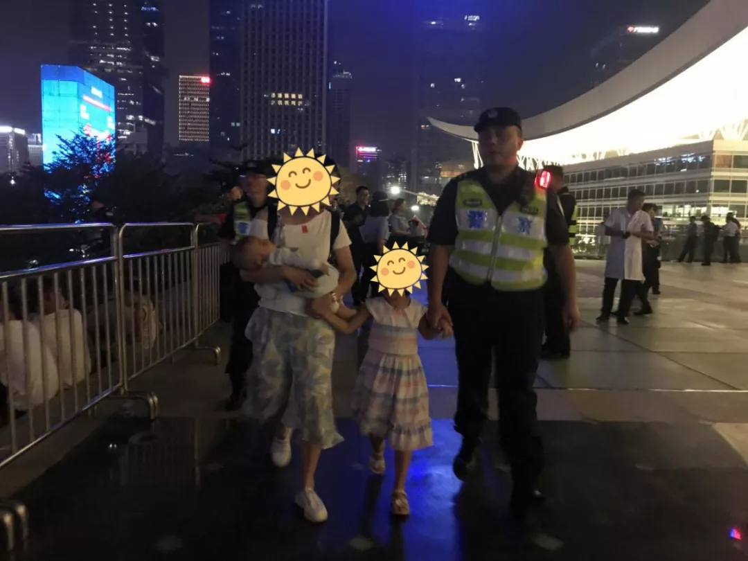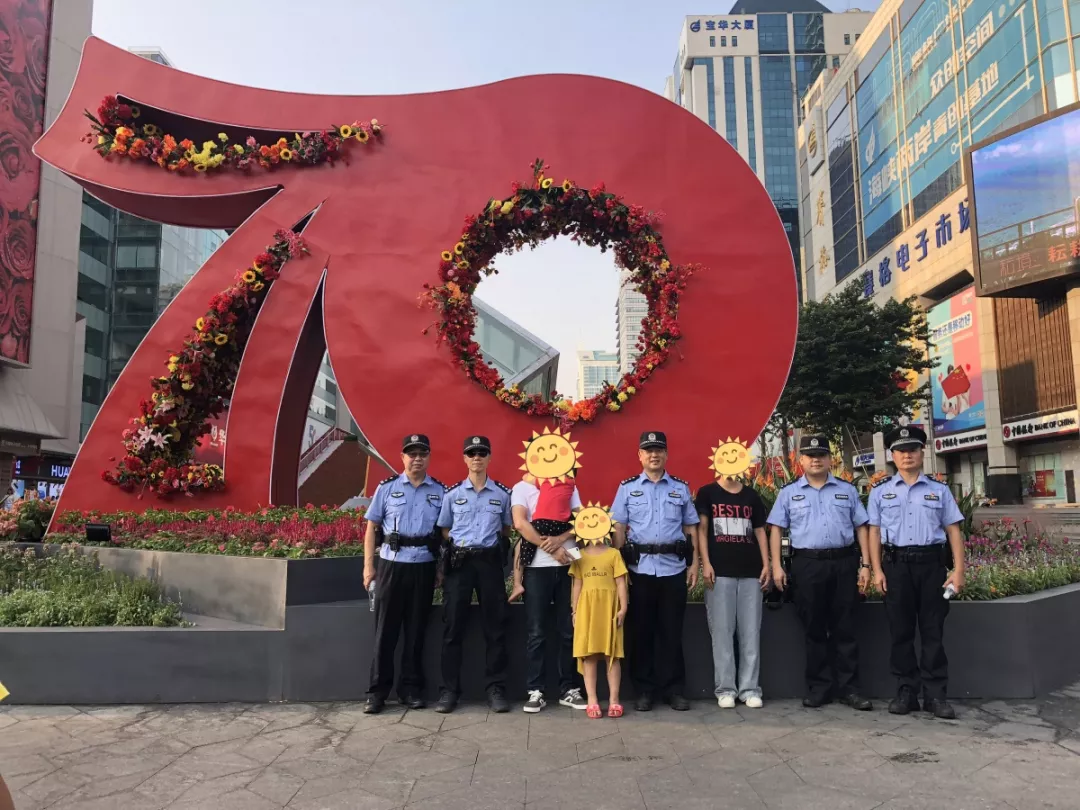 10月2日深圳市公安局福田分局華富派出所民警在燈光秀外圍執(zhí)勤過(guò)程中發(fā)現(xiàn)走失小孩,并幫助其找到父親和舅舅。