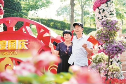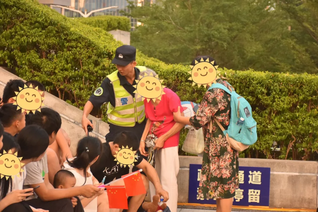 10月2日燈光秀現(xiàn)場(chǎng),深圳市公安局福田公安分局機(jī)動(dòng)訓(xùn)練大隊(duì)摩托車(chē)中隊(duì)隊(duì)員幫助年邁的老奶奶尋找合適的觀(guān)燈位置。