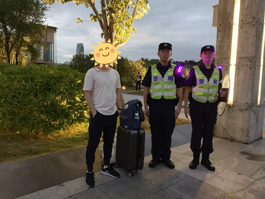 10月6日,深圳市公安局福田分局機(jī)動(dòng)訓(xùn)練大隊(duì)摩托車中隊(duì)隊(duì)員楊斌、翁紹允在巡邏途中發(fā)現(xiàn)一個(gè)行李箱和一個(gè)書包無人認(rèn)領(lǐng),他們便在原地等待失主,約半小時(shí)后失主前來認(rèn)領(lǐng)行李,在核實(shí)失主身份后物歸原主,失主表示衷心感謝。