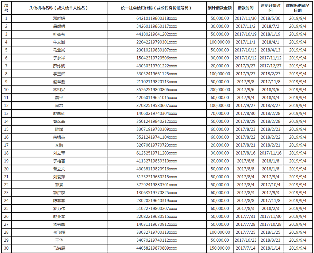 為進一步維護網(wǎng)貸行業(yè)秩序,加強失信懲戒力度,深圳市地方金融監(jiān)督管理局對深圳市互聯(lián)網(wǎng)金融協(xié)會報送的數(shù)據(jù)進行信息整理、資料評估、數(shù)據(jù)篩查后,公布了第一批74名失信網(wǎng)貸借款人的相關(guān)信息。