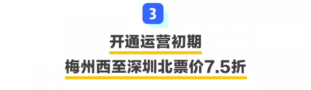 在開通運(yùn)營(yíng)初期,行經(jīng)梅汕鐵路的各趟列車,將根據(jù)不同運(yùn)行區(qū)間、運(yùn)行時(shí)間和停站情況實(shí)行,6折、7.5折、8折、8.5折、9折五種折扣票價(jià)。