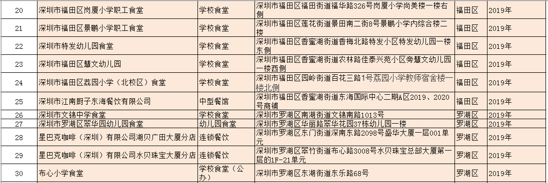 除了新增的A級餐廳外,該局還公布了降級餐廳名單:深圳市龍崗區(qū)龍崗街道培英幼兒園食堂因不符合餐飲服務食品安全量化等級A級要求予以降級。以及1家變更單位名稱的A級餐飲服務單位:原名稱為深圳市光明區(qū)培真幼兒園食堂的單位變更名稱為:深圳市光明區(qū)鳳凰街道嘉明幼兒園食堂。