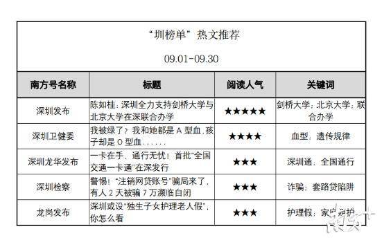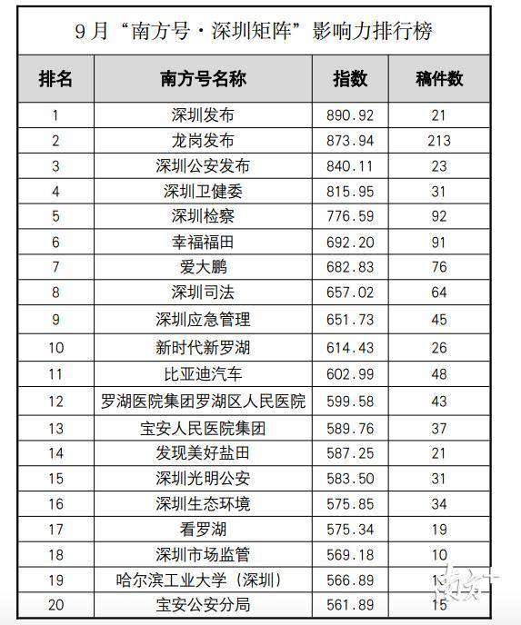 原標題:5個南方號首上榜,“深圳發(fā)布”蟬聯(lián)第一!“南方號·深圳矩陣”9月榜單出爐