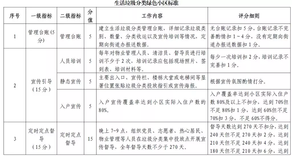 針對(duì)單位激勵(lì)對(duì)象不同,《辦法》還詳細(xì)制定了《生活垃圾分類(lèi)綠色單位標(biāo)準(zhǔn)》《生活垃圾分類(lèi)綠色學(xué)校標(biāo)準(zhǔn)》《生活垃圾分類(lèi)綠色小區(qū)標(biāo)準(zhǔn)》等要求;針對(duì)個(gè)人激勵(lì)對(duì)象,也明確提出了垃圾分類(lèi)督導(dǎo)員、志愿者、教師和其他從業(yè)人員等不同要求。