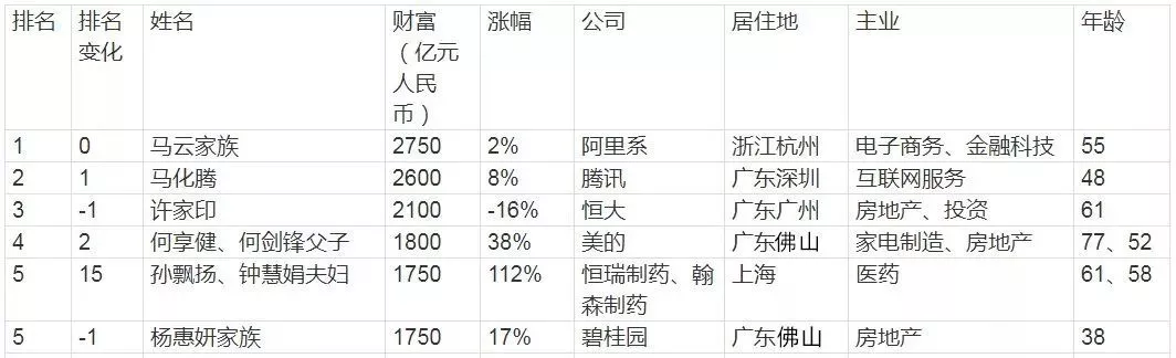 楊惠妍家族與孫飄揚、鐘慧娟夫婦并列第5位