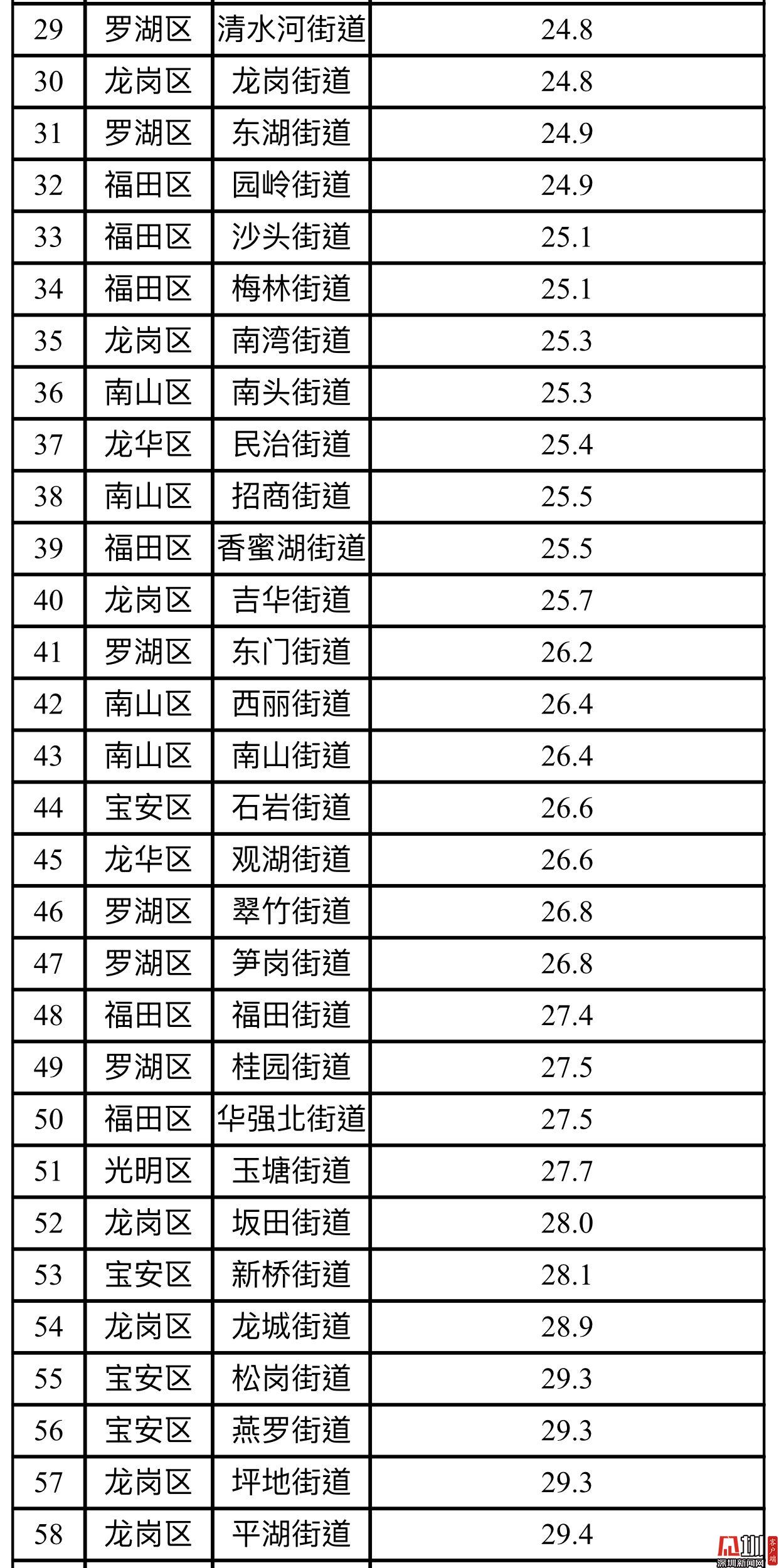 深圳74街道9月PM2.5濃度公布 新湖街道濃度最高!