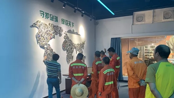 再生資源回收創(chuàng)意館也吸引了街道社區(qū)、環(huán)衛(wèi)工人、青少年等各界人士前來參觀。10月20日下午,來自光明區(qū)馬田街道的50余名退伍軍人及其子女來到寶安區(qū)松崗街道再生資源回收創(chuàng)意館參觀,對各類從未見過的電子產品好奇心滿滿,對每一樣展品都充滿興趣。他們興致勃勃地聽李一航講解電子產品的發(fā)展歷史與再生資源回收的重要意義,特別是當他們在指導下使用民國時期的手搖式發(fā)電機成功為現(xiàn)在的音樂播放器供電時,更是覺得不可思議,紛紛驚嘆“我們是不是穿越了?”