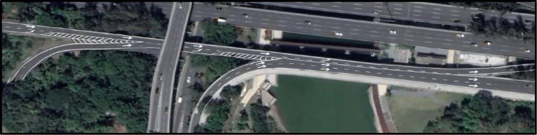 重新劃分之后的車道為1條濱海大道直行車道和2條沙河西路右轉(zhuǎn)濱海大道車道。同時,將直行車流與右轉(zhuǎn)車流的虛線已經(jīng)改為實線,沙河西右轉(zhuǎn)車流禁止駛?cè)雰?nèi)側(cè)車道,防止兩股車流交織。
