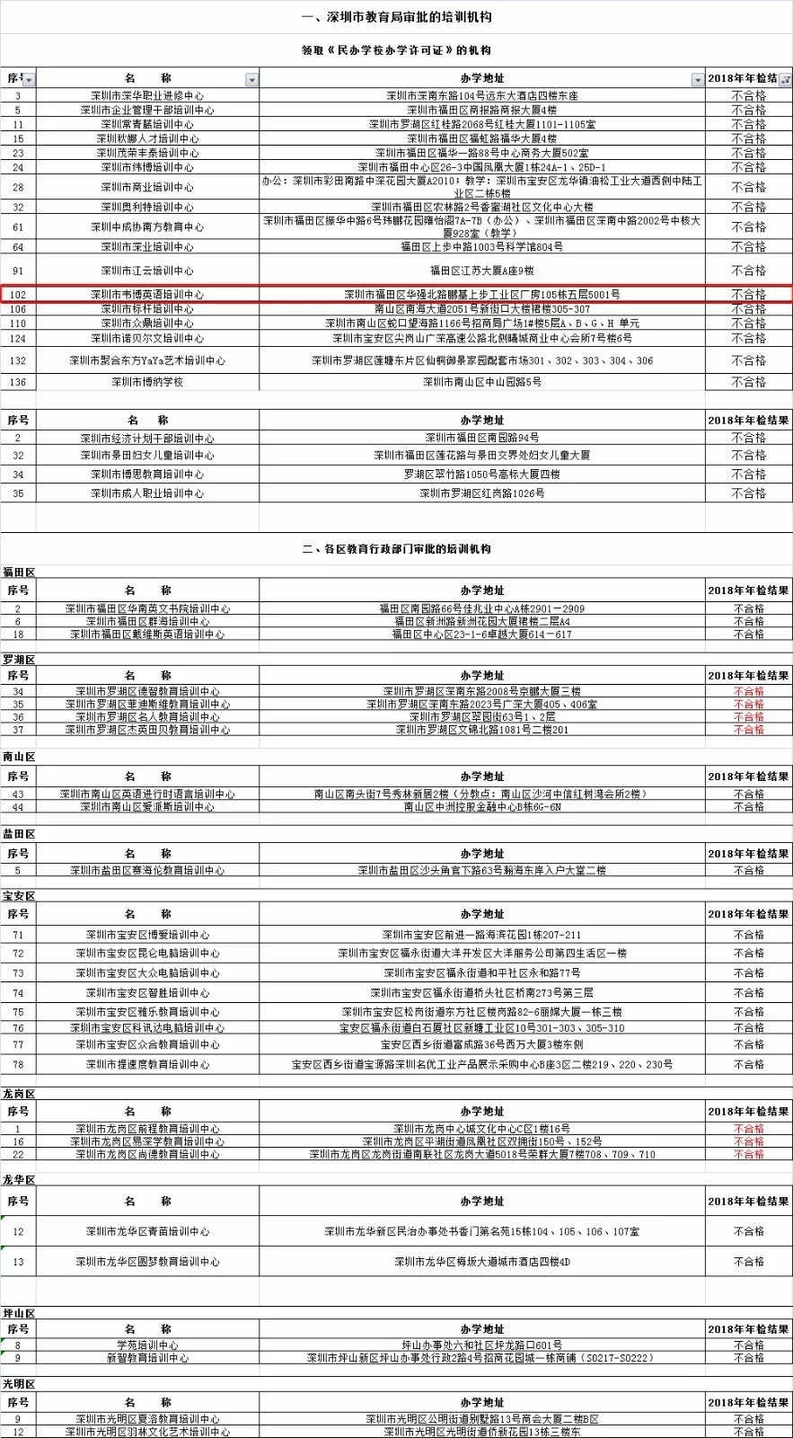 分別是位于羅湖遠東大酒店的深華職業(yè)進修中心、羅湖紅桂大廈的深圳市常青藤培訓中心、市科學館的深業(yè)培訓中心、翠竹路的博思教育培訓中心,這些培訓機構(gòu)也都早已無影無蹤。