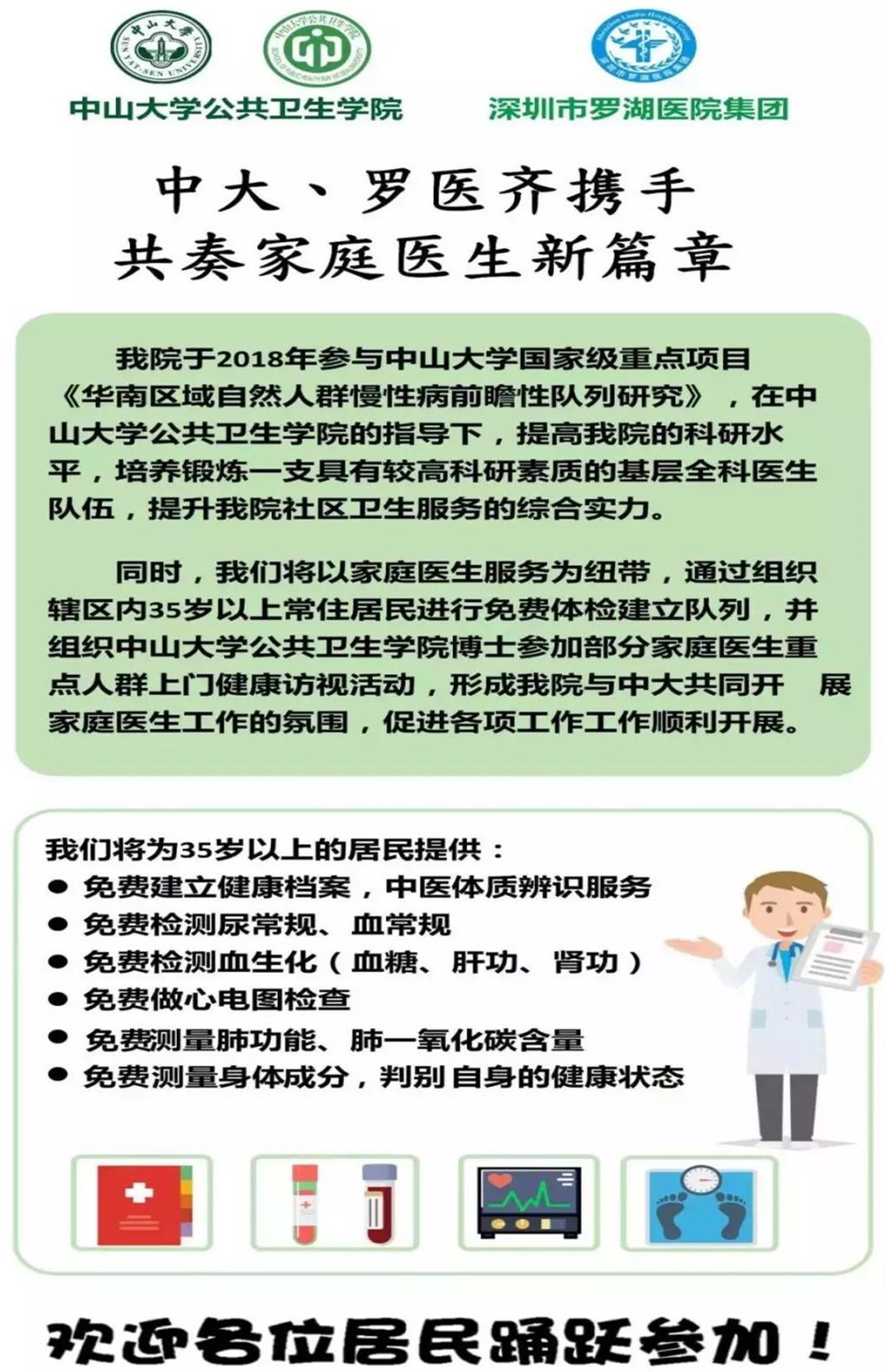 近日,羅湖醫(yī)院集團(tuán)參與了中山大學(xué)國(guó)家級(jí)重點(diǎn)項(xiàng)目《華南區(qū)域自然人群慢性病前瞻性隊(duì)列研究》,將以家庭醫(yī)生服務(wù)為紐帶,通過(guò)組織轄區(qū)內(nèi)35歲以上常住居民進(jìn)行免費(fèi)體檢建立隊(duì)列。