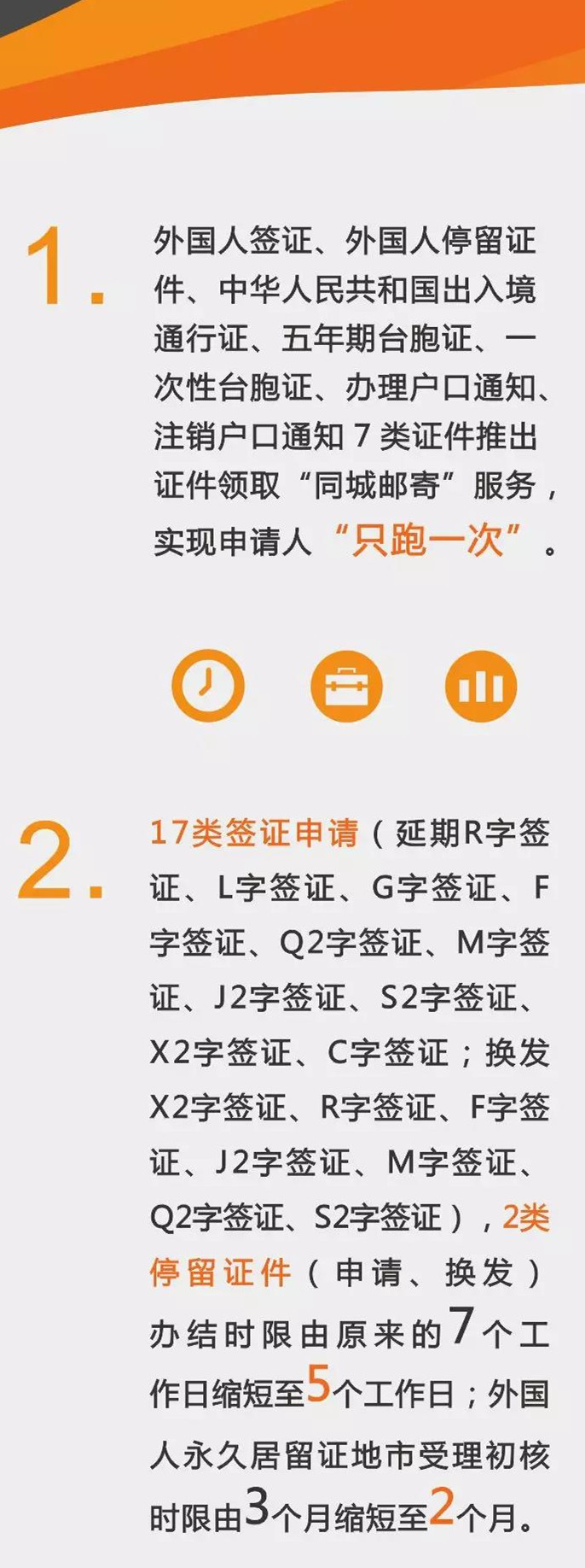 見圳客戶端·深圳新聞網(wǎng)2019年11月11日訊 記者從深圳出入境了解到,為進(jìn)一步優(yōu)化營商環(huán)境,提升人才流動便利,深圳市公安局出入境管理局再推出兩項境外人員出入境便利服務(wù)措施。包括7類證件領(lǐng)取可“同城郵寄”、2類停留證辦結(jié)時限縮短至5個工作日等,具體內(nèi)容如下: