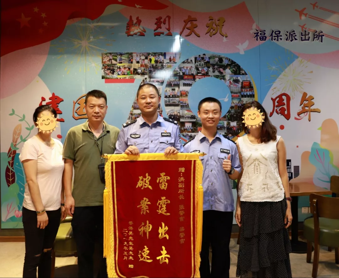 近日,在得知殷某平被繩之以法后,事主的妻子吳太太迅速趕到福保派出所向民警張健贈送錦旗表達感謝,感激之情溢于言表。