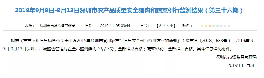 報!深圳新一期肉菜抽檢通報來了,速看合不合格!