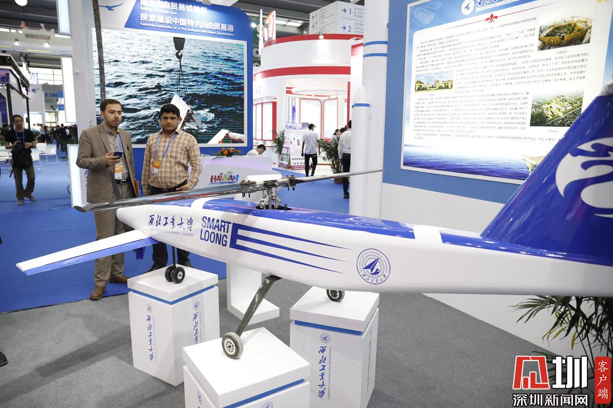一位展區(qū)工作人員正在操控無人機。