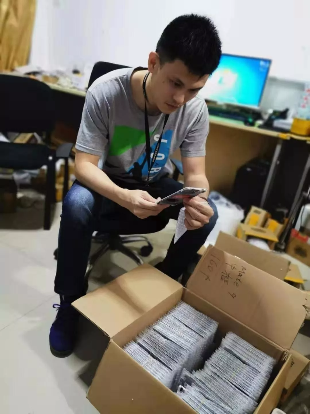 對(duì)電商平臺(tái)網(wǎng)店“深圳市尤信達(dá)包裝印刷有限公司”位于深圳市福田區(qū)華強(qiáng)北街道華美大廈某倉(cāng)庫(kù)窩點(diǎn)進(jìn)行了突擊檢查,執(zhí)法人員現(xiàn)場(chǎng)發(fā)現(xiàn)一大批侵犯華為注冊(cè)商標(biāo)各類包裝材料,各種手機(jī)零配件包裝材料堆滿了整個(gè)場(chǎng)所,現(xiàn)場(chǎng)只留有勉強(qiáng)一人通行的過道,經(jīng)現(xiàn)場(chǎng)清點(diǎn)共323箱,品類涉及有各種零件包裝盒、合格證及防偽標(biāo)簽。