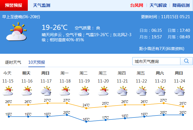 見圳客戶端·深圳新聞網(wǎng)2019年11月15日訊 記者從深圳市氣象臺了解到,15日晴天間多云,空氣干燥;氣溫19-26℃;東北風(fēng)2-3級;濕度40%-80%。16-17日晴天間多云,早晚清涼,部分時間能見度較差。18-20日新一股冷空氣影響,北風(fēng)明顯加大,氣溫下降。
