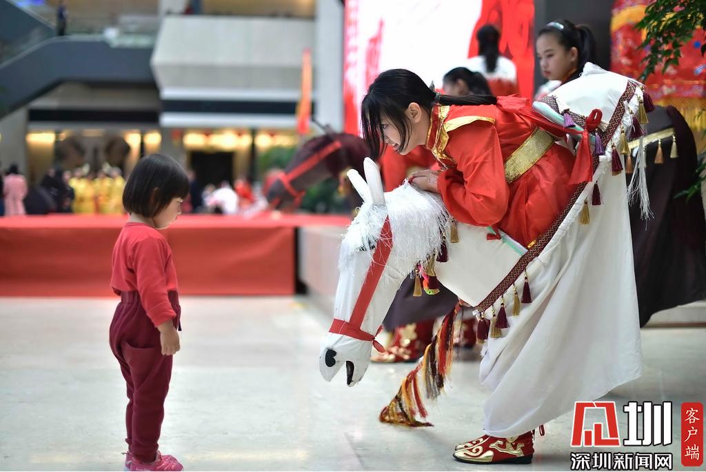 2019年2月19日,福田區(qū),農(nóng)歷春節(jié)剛過,一位小女孩好奇的看著準備表演“紙馬舞”的演員。