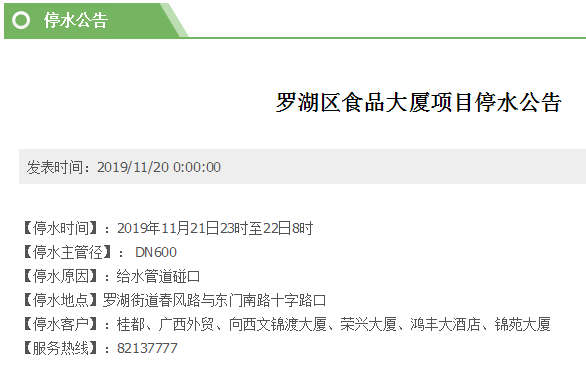 停水客戶:桂都、廣西外貿(mào)、向西文錦渡大廈、榮興大廈、鴻豐大酒店、錦苑大廈