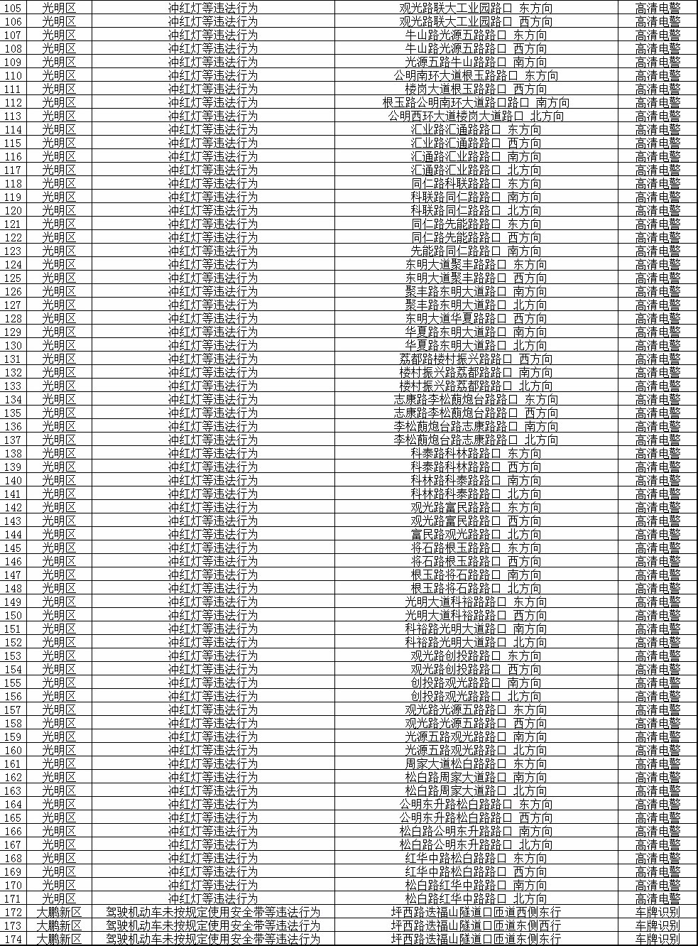 見(jiàn)圳客戶(hù)端·深圳新聞網(wǎng)2019年11月22日訊 各位司機(jī)們注意啦!11月21日,記者從深圳市公安局交通警察局獲悉,近日這些路段將啟用174套交通技術(shù)監(jiān)控設(shè)備,機(jī)動(dòng)車(chē)逆行、沖紅燈、未按規(guī)定使用安全帶等違法行為,都會(huì)被拍到。
