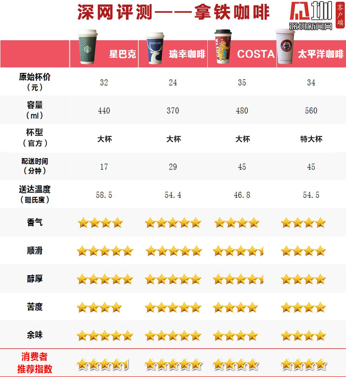 為了一探究竟,深圳新聞網(wǎng)測評小組聯(lián)合專注產(chǎn)品質量、消費服務專業(yè)組織中國質量萬里行,邀請了來自新聞、餐飲、IT以及其他行業(yè)的20位咖啡愛好者,對深圳市面上主流的星巴克、瑞幸、太平洋、COSTA 4個品牌,2種口味【“拿鐵(熱)”、“美式(熱)”】的咖啡,通過主觀+客觀的形式進行了測評。