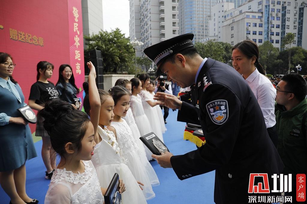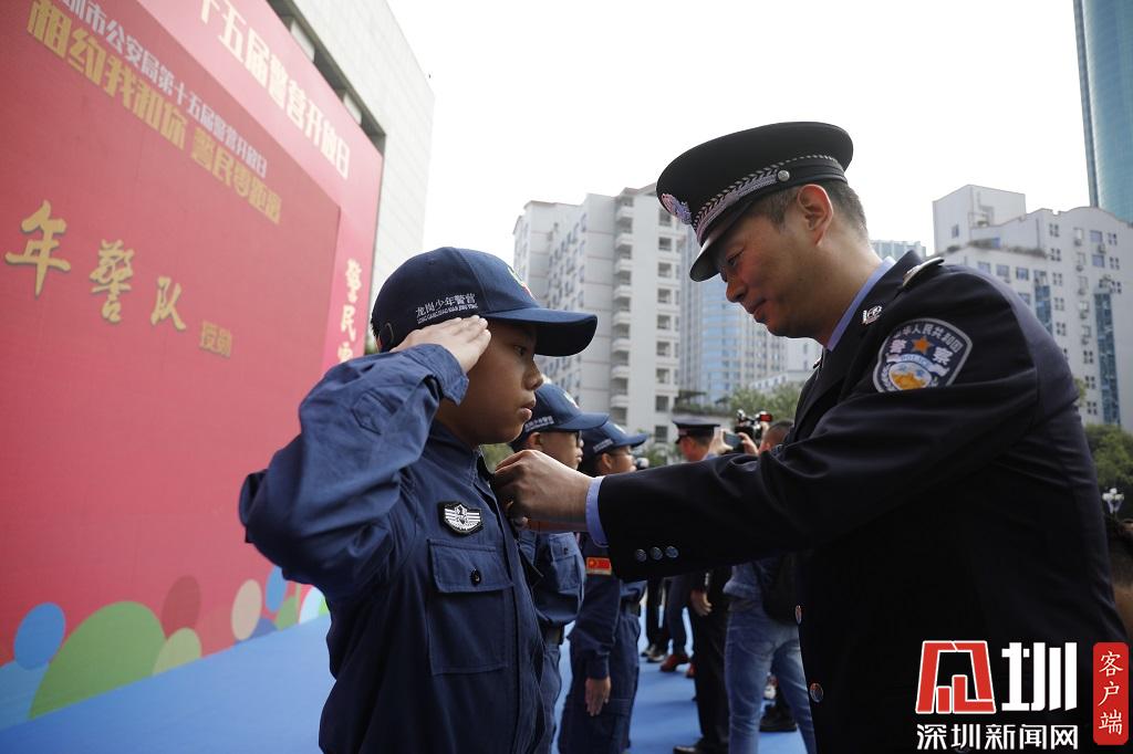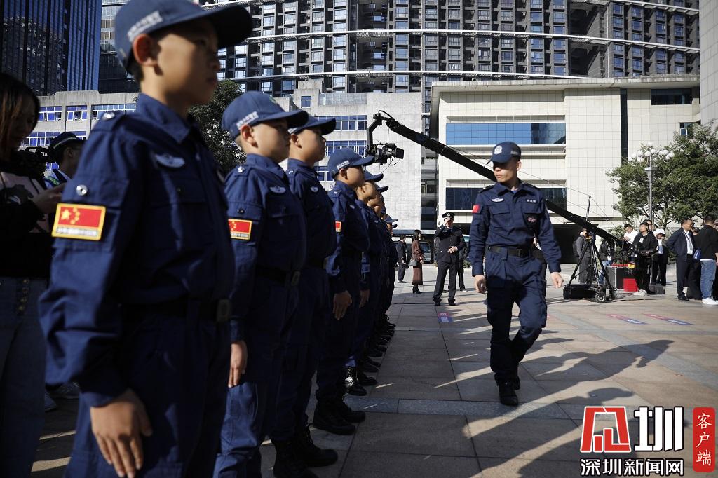 深圳市公安局領(lǐng)導(dǎo)為少年警隊授勛。