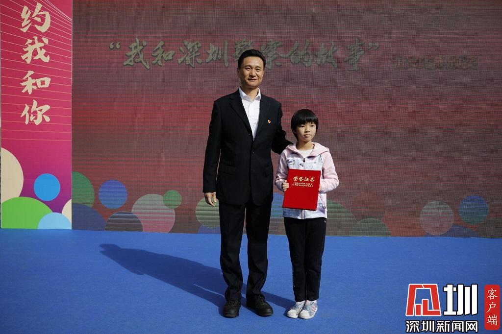 獲得“我和深圳警察的故事”征文比賽特等獎的小朋友上臺領(lǐng)獎。