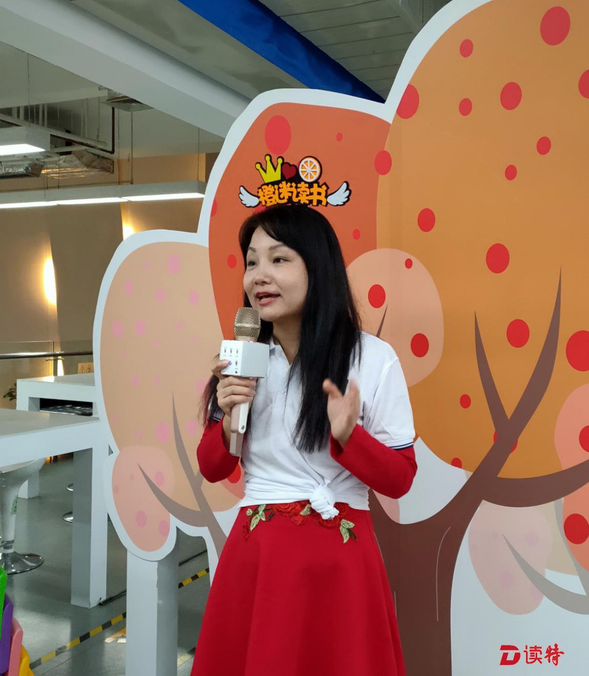 館長媽媽陳瑛(光明區(qū)公共文化藝術(shù)發(fā)展中心主任)為閱讀之星頒獎(jiǎng)。