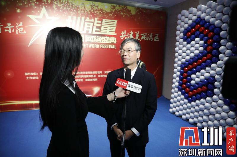 全國道德模范陸建新在網絡盛典現場接受采訪。見圳客戶端、深圳新聞網記者楊浩翰 攝