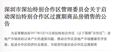 12月2日關(guān)于啟動(dòng)深汕特別合作區(qū)過(guò)渡期商品房銷(xiāo)售的公告發(fā)布