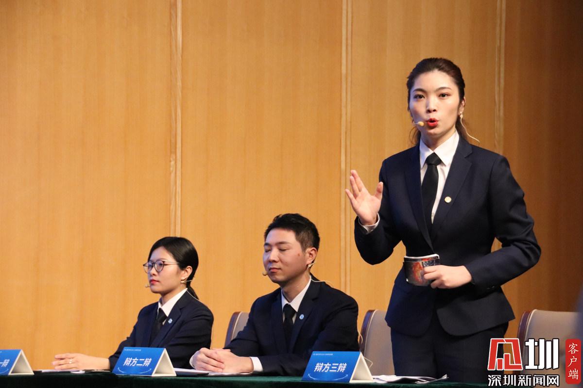 第一個辯題結束后,辯方辯手接受深圳新聞網(wǎng)記者采訪。從左到右依次為卜祥波、李銳杰、艾青三位律師。