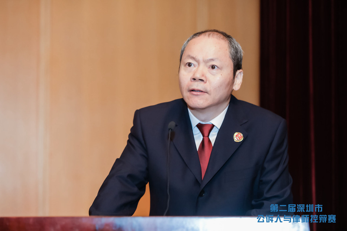 深圳市司法局局長蔣溪林在致辭中表示,今天的控辯大賽是深圳法律人的一個盛會,舉行控辯大賽是為了增進法律職業(yè)共同體的相互了解,特別是在履職過程中,大家能夠站在彼此的立場上,共同為維護法律尊嚴和社會公平正義共同努力。